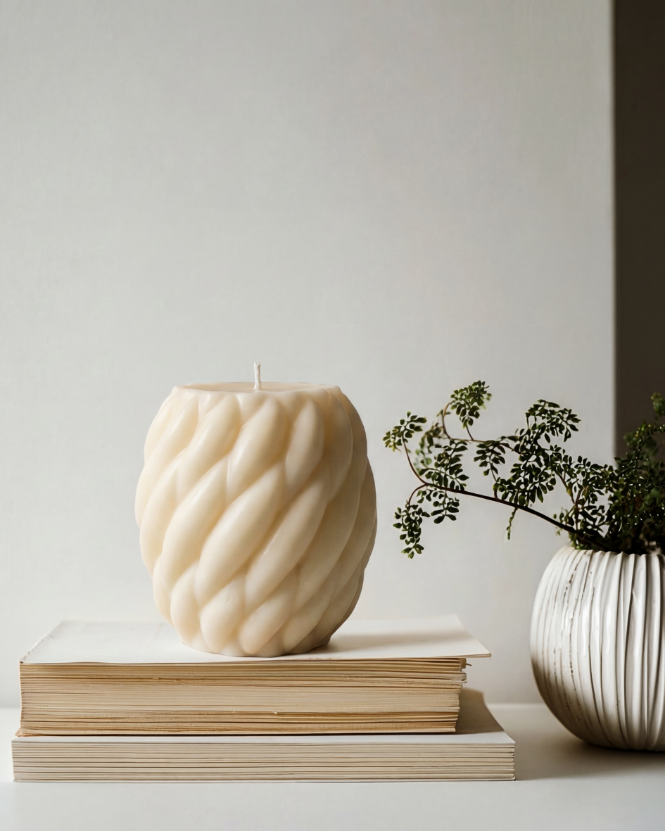Eine handgefertigte Kerze mit feiner Bubblestruktur, gefertigt aus natürlichen Materialien und mit viel Liebe zum Detail.