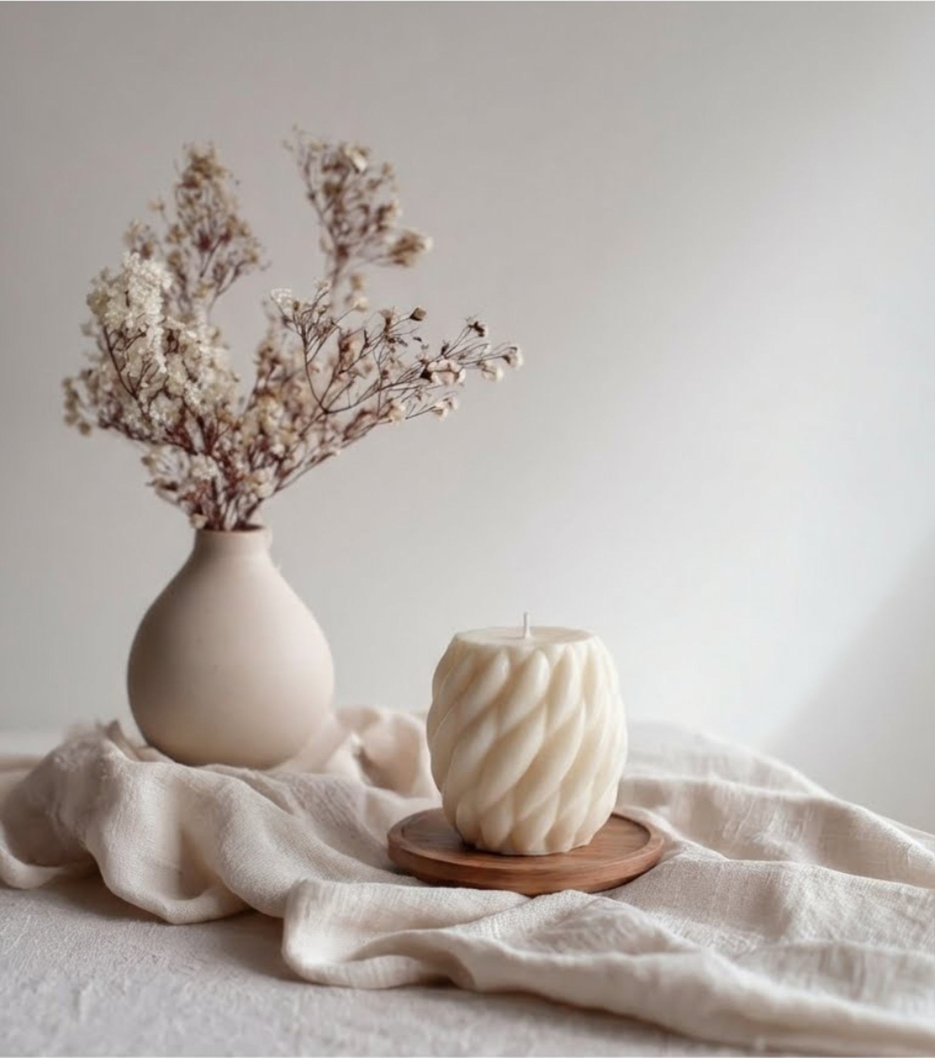 Ihre schlichte Form fügt sich harmonisch in zeitlose Interieurs ein und schafft eine warme, ruhige Atmosphäre, ganz ohne Duft, ganz ohne Ablenkung.
